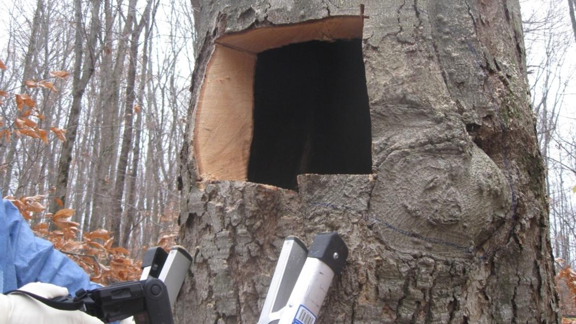 “I crawled up on the investigator’s back and looked through a knot hole in a tree that was about 7 feet above the ground and put a flashlight in there and there was a bunch of wood chips around, but I could see portions of black plastic garbage bags and that’s how we knew it was tree,” said Dietz.
